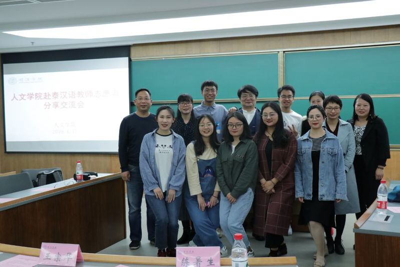 会议伊始,蔡国妹教授向我们介绍了汉语国际教育专业建设情况,提出本次交流会是围绕着汉语言国际教育专业的考研情况、汉语教师志愿者面试选拔情况以及培训情况展开的。而后,几位赴泰汉语教师志愿者同学依次上台分享自己的志愿经历。他们为我们分享了他们培训的过程,分析了汉教发展前景,讲述了作为一名志愿者的心得体会。“做好一名志愿者,就是要多实践,培养自己的能力,不断完善自己教学技能。”方刚同学如是说。