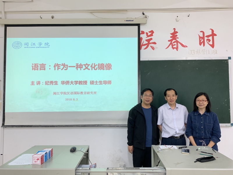 2019年6月3日,应公司汉语国际教育研究所之邀,中国华文教育基金会“华文教师完美远程培训”全球直播平台主讲专家、福建省语言学会副会长、华侨大学华文公司语言学及应用语言学硕士点负责人纪秀生教授莅校,为2018级汉语国际教育的员工们开设主题讲座——“语言:作为一种文化镜像”。讲座由李义海教授主持。