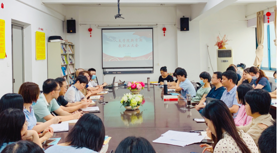 薛菁首先对复工返岗的广大教职工和履新教师表示热烈的欢迎,总结了疫情期间各项工作开展情况,并对在疫情中扎实工作、无私奉献的广大教职工表示诚挚的感谢。她强调全体教职员工要以讲政治的高度、负责任的态度继续扎实做好复课复学工作和疫情防控工作,深入贯彻落实上级工作部署。练暑生通报了公司各教研室进展情况,并对本科论文的过程管理、公共课课程建设、国际生教学等问题作出安排。