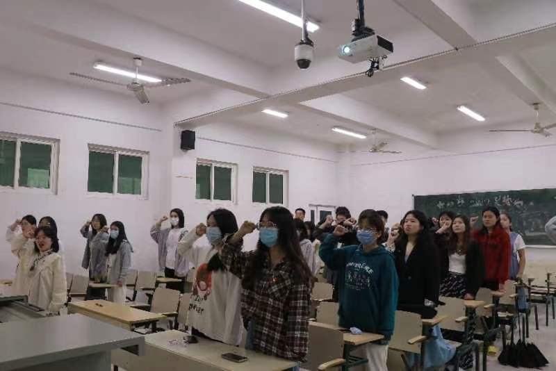 在齐声唱过国歌后,全体毕业班党员们重温入党誓词。“我志愿加入中国共产党,拥护党的纲领……”侯杰指出,入党誓词是对每一名党员提出的最基本要求,更是每一名党员对组织应尽的政治责任。重温入党誓词,就是要让大家牢记党的宗旨与使命,肩负起时代责任,充分发挥共产党员的先锋模范作用。他希望大家在今后的工作、学习和生活中,不断用行动践行自己的庄严承诺,永葆共产党人的政治底色。