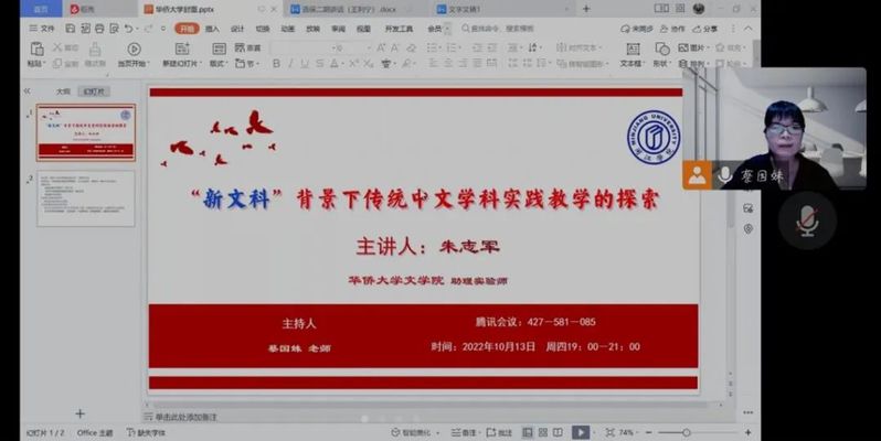 为进一步促进公司学子创新创业教育工作,培养员工创新意识,公司邀请华侨大学文公司中国语言文学实验中心副主任朱志军老师于2022年10月13日在腾讯会议开设题为《“新文科”背景下传统中文学科实践教学的探索》的线上讲座。本次讲座由汉语国际教育专业负责人蔡国妹老师主持。