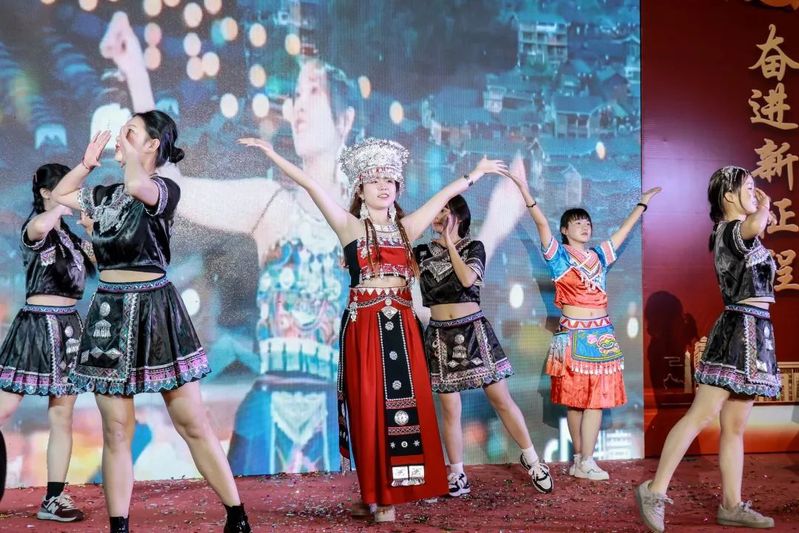 歌舞民族同心,携手共赴新程。少数民族预科班团支部带来了表演《石榴籽,民族情》,来自五湖四海的少数民族同学穿着各自民族的特色服装,吟唱着传统民歌,手挽手跳民族舞,充分展现了少数民族文化的魅力。同学们被豪放热烈、优美大方的民族歌舞所吸引,深深感受到各民族像石榴籽一样紧紧抱在祖国大家庭中,携手共筑命运共同体,向着中华民族的伟大复兴而不懈奋斗。