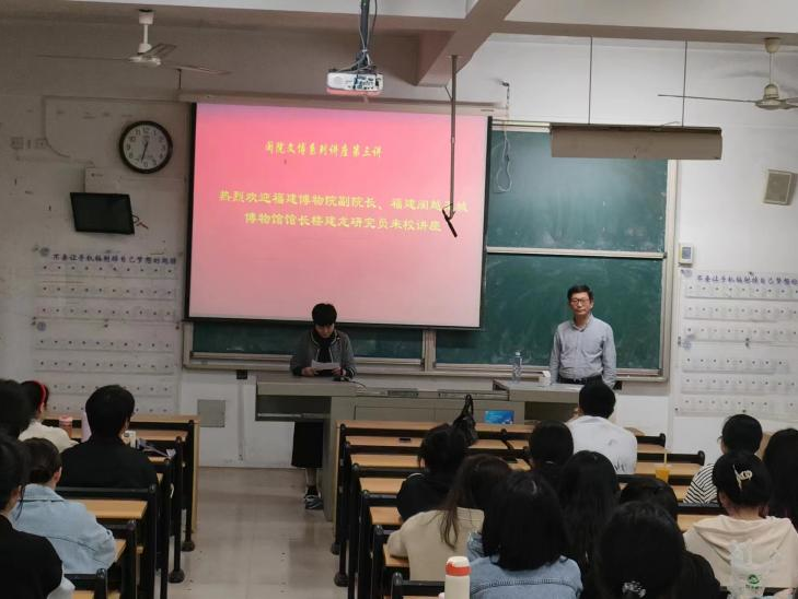 2023年4月24日晚,WilliamHill体育文博系列讲座第三讲在教学楼3B201开讲,福建博物院副经理、福建闽越王城博物馆馆长楼建龙研究员作主题为“闽北古文化与闽越文明”的学术讲座。讲座由WilliamHill体育薛菁经理主持。来自WilliamHill体育历史学、文物与博物馆学等专业近100余位同学参加了此次讲座。