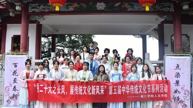 红墙青瓦,朱子祠前;飞檐反宇,乌山亭下。孩童的嬉笑声缀着小溪潺潺的流水声,正乘着风,摇着睡眼朦胧的枝条。十二“花神”自乌山亭走下,以乌山公园的盎然春意为背景,为游客带来了一场动人心弦的走秀。二月杏花花神,似着流光锦缎,素手轻点杏花枝,提花绕雀钗,凝眸春垂处;四月牡丹花花神,摊手展袖,手腕一转,发间绢花便被她衔入朱唇中,再是一转,绢花不是坠地而是入了心间。十月芙蓉花神,纤腰楚楚,木芙蓉仿佛自她手间生长,回眸一下,顾盼生姿。