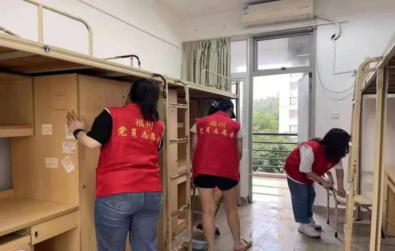 志愿者们以饱满的热情和积极主动的态度,清理宿舍积存的垃圾,擦除床铺、柜子上的积灰,打理卫生死角,清扫走廊落叶纸屑,并将一袋袋垃圾带到垃圾收集站进行集中处理。