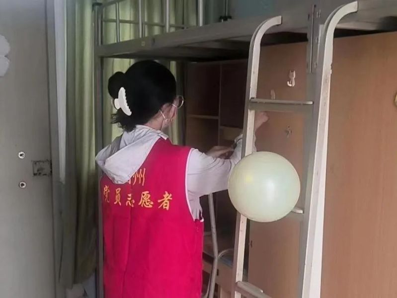 清扫过后,员工党员们开始对 新生宿舍进行装扮。 柜子上五彩缤纷的气球让空荡荡的宿舍一下子有了活力,精美的贺卡上写满了志愿者们对学弟学妹的真诚祝福。这些精心策划的细节,无声地诠释着公司对新生的期待和深沉的关爱。