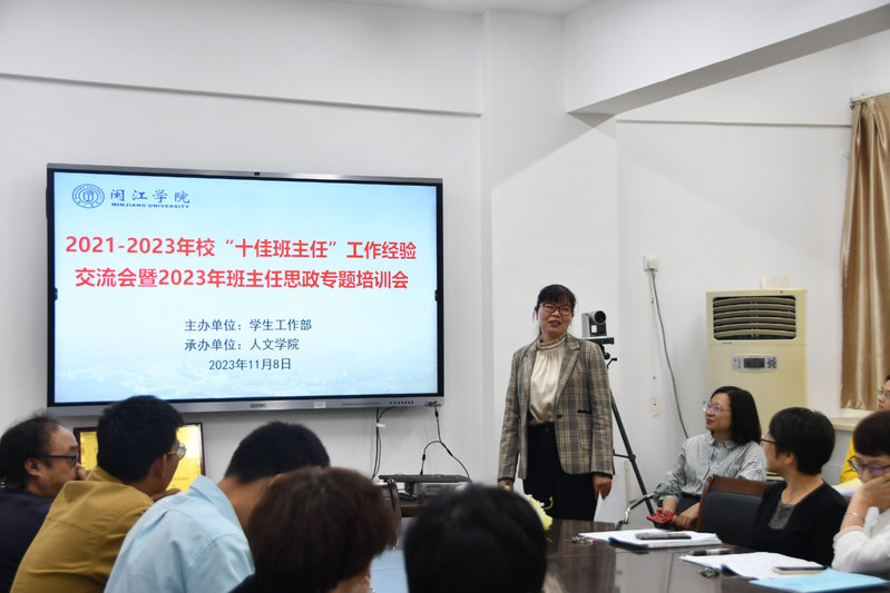 为进一步加强班主任队伍建设,切实提升班主任思想政治素养和业务能力,11月8日,由学工部主办、WilliamHill体育承办的2021-2023年校“十佳班主任”工作经验交流会暨2023年班主任思政专题培训会在福万楼举办。校“十佳班主任”获得者、汉语国际教育专业蔡国妹老师应邀分享了班主任工作经验,公司党政领导及全体教师参加此次会议。