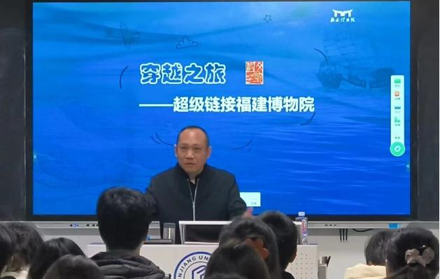 讲座伊始,龚张念副经理以“链接”与“穿越”为关键词,追溯博物馆的发展历史,重点讲解了博物馆的具体职能。随后,龚副经理介绍了福建博物院各部门的具体职能及运行模式等。龚副经理以福建博物院成功举办“丝路帆远”展览和“福航天下——海上丝绸之路的文化印记”展览为案例,并结合自身经历向同学们讲解福建博物院在展览过程中各个环节如何衔接,以及展览与观众之间如何链接。龚副经理用通俗易懂的语言,介绍了关于博物馆策展的过程、内容及其展览定位,让参加讲座的同学深刻地了解了博物馆以及展览产生的全过程。