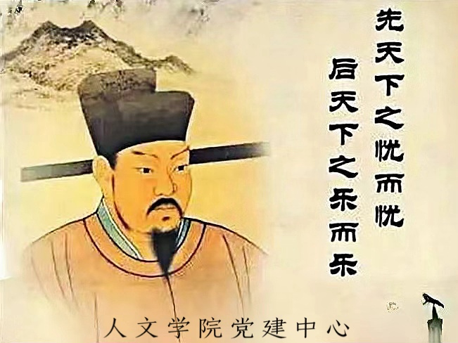 范仲淹(公元989—1052年),字希文,北宋苏州吴县人,官至宰相。廉洁奉公,节操高尚,名垂青史。其千古名句 “先天下之忧而忧,后天下之乐而乐”,就是他人生的座右铭。这一忧一乐、一先一后,道出了他以天下为己任、以黎民百姓忧乐为己忧乐的“仁者”情怀。