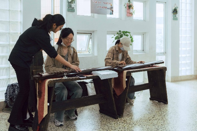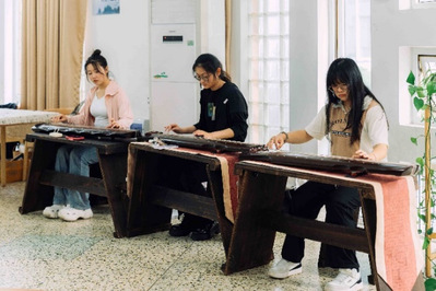 在体验过程中,部分老师和同学成功学会了古琴曲《沧海一声笑》、《菩萨蛮》等。他们的手指在琴弦上轻轻跳动,虽然不是很流畅,但仍然流淌出如泉水般清澈的音乐。