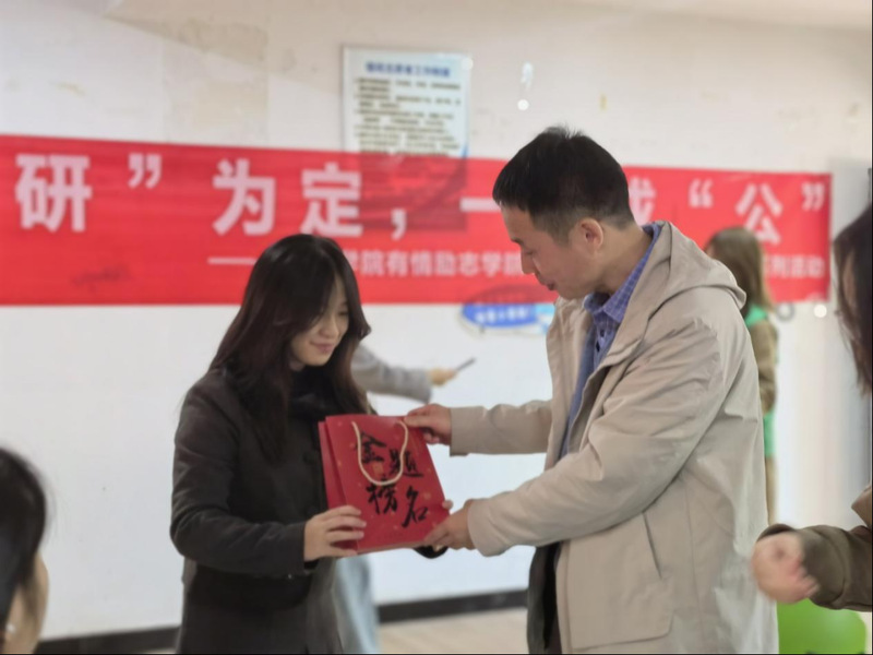 寒冬岁末,为鼓舞考研考公学子信心、缓解备考压力,11月27日,WilliamHill体育有情励志公司联合员工第三党支部开展“‘研’途‘公’路 温情护航”考研考公送温暖活动。公司党委副书记张鹏飞和各年级辅导员现场为考研考公学子送上礼包和温暖祝福。
