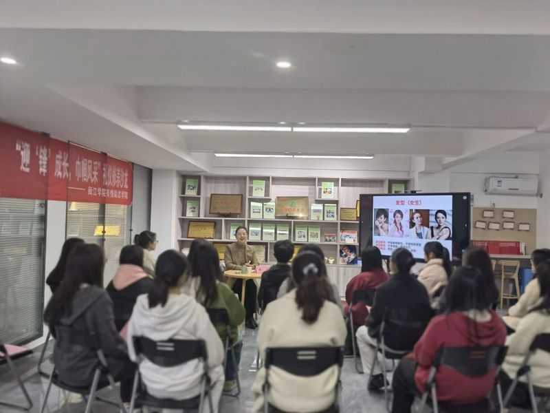 服装公司党委书记潘灯围绕《打造黄金第一印象:求职面试形象礼仪攻略》进行专题辅导。内容涵盖职场礼仪、餐桌礼仪、着装规范等多个方面,通过生动的案例分析与现场演示,帮助同学们深入理解职场礼仪,有效提升了同学们的礼仪修养,为增强未来职场竞争力奠定了基础。