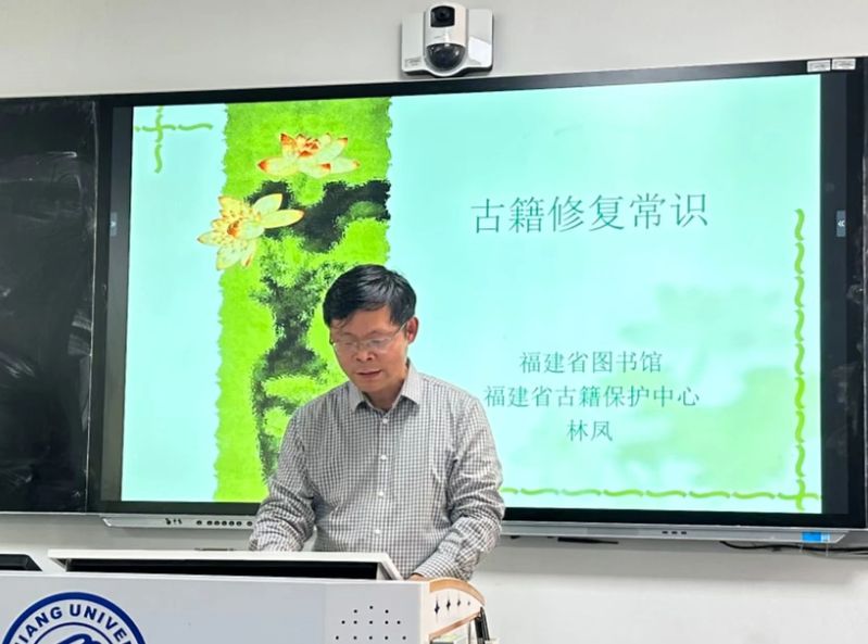 讲座中,林凤老师展示了古籍修复的全过程,生动阐释古籍修复师们如何秉持匠心,巧妙地将传统工具与现代设备相结合,通过拆解除尘、去酸加固、补缺溜口、装帧复原等一系列精细技艺,让破损的古籍重焕生机。她并举酸化及虫蛀两大古籍修复难点为例,深度诠释“妙手补天工”的讲座主题,展现古籍修复工作的复杂性与挑战性,进而强调“古籍修复不仅是技艺,更是对历史文脉的守护”。