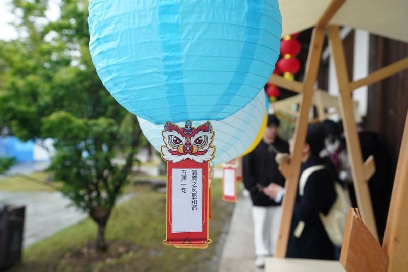 现场还举办了猜谜活动,五颜六色的灯笼高高挂起。灯谜的内容丰富多样,同学们围在灯笼下,或冥思苦想,或互相交流探讨,有的恍然大悟,兴奋地跑去核对答案,有的则被难住,抓耳挠腮,不肯轻易放弃。主持人不时报出猜对的同学名单,欢呼声和掌声此起彼伏,现场气氛热烈而欢快。