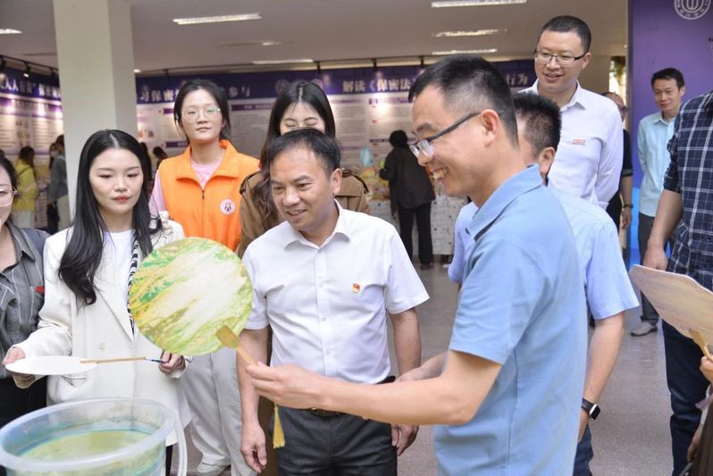 活动现场,张建安认真观看了新《保密法》相关宣传教育内容和“保密须知”,仔细参观了校园保密原创文学作品展览及由百余名员工参与制作的 “百密图”、保密主题剪纸作品、非遗漆扇等,聆听了保密红色故事,充分肯定了此次“保密宣传教育+传统文化”的活动形式与内容。张建安指出,在数字化时代,泄密隐患无处不在,要加强全校师生的保密宣传教育,不断丰富宣传教育形式,让全校师生严守保密之纪,紧绷保密之弦,勇担保密之责。