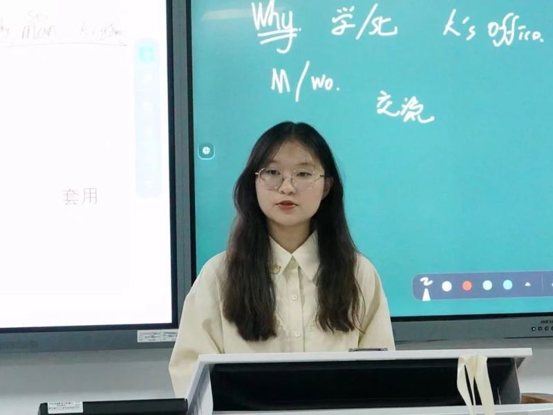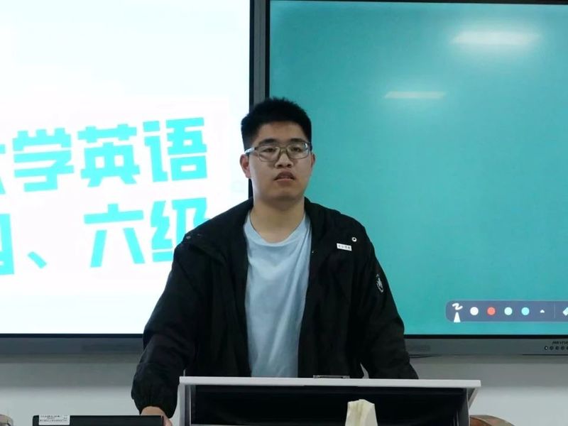 2023级历史学(师范)2班林鹏飞结合自身备考经历,在听力、写作、翻译以及备考策略等方面展开分享。在听力技巧环节,他建议以“抓关键词”为核心策略,并现场播放真题片段,邀请同学尝试速记关键信息。此外,林鹏飞还建议同学分阶段攻克薄弱项,做真题比盲目刷题更有效。