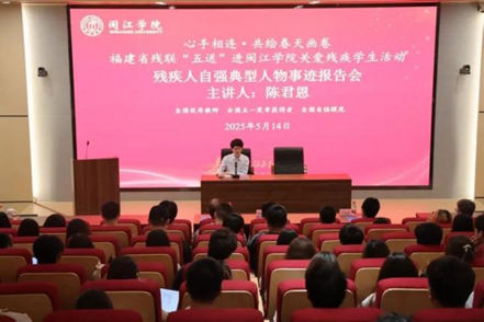同学们认真聆听了陈君恩老师的自强事迹分享。陈君恩老师致力于改善盲人的生活条件,三十多年曾帮助过百余名盲人。在报告中,陈君恩老师分享了他创作的《不敢从这里走过》、《爱心接力棒》等歌曲,并讲述了他从“受助”到“助人”的感人故事。陈君恩老师励志靠努力实现自己的人生价值,回馈曾经帮助过自己的人,并决心帮助更多深陷苦难的人。