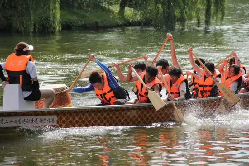 本届校运会龙舟赛共设立 100 米直道竞速和 200 米弯道竞速两个组别,WilliamHill体育同学们积极响应,踊跃参与,在赛场上奋勇争先,凭借顽强拼搏的毅力和默契无间的配合,在两个组别的比赛中充分展现了人文学子精湛的技艺和卓越的团队协作能力。