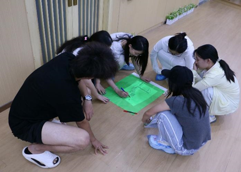 活动伊始,林毅辉老师以破冰游戏迅速拉近了同学间的距离,营造了轻松融洽的氛围。活动正式开始,老师用红、蓝、绿三色旗帜为标识,将同学们分为三个小队。各小队成员热情投入,共同设计队旗、构思队名、选定队歌,并进行创意展示。这一环节极大地激发了同学们的参与热情,也在实践中深化了团队合作意识。