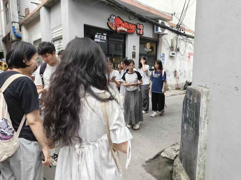 考察正式开始,同学们在翁伟志老师的带领下记录了村中的各处碑刻。许多同学表示,曾经数次经过这里却从来没有注意到这些蕴含着文化记忆的碑刻。这也在提醒着同学们:既要练就一双善于发现文化的慧眼,更要永葆一颗热忱探寻文化的初心。