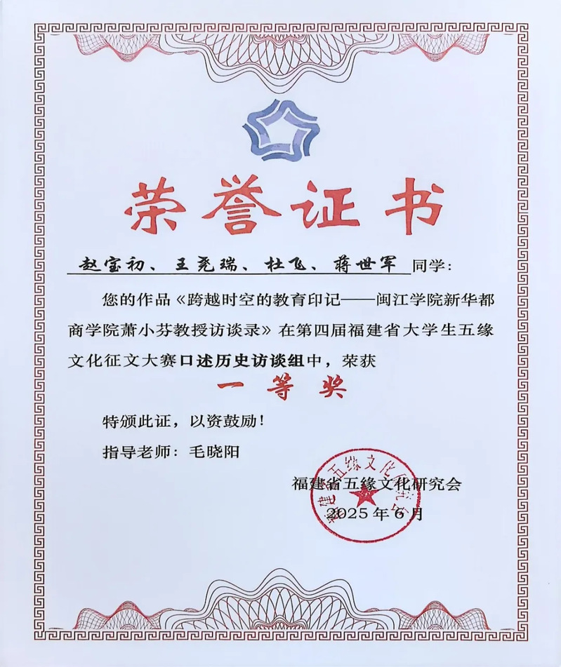 口述历史访谈录组一等奖:《跨越时空的教育印记 -- WilliamHill体育新华都商公司萧小芬教授访谈录》