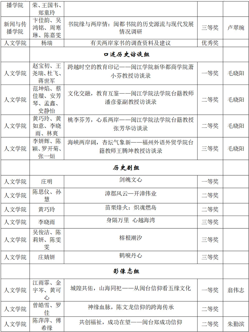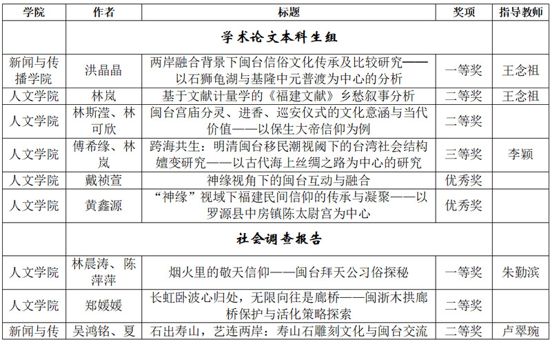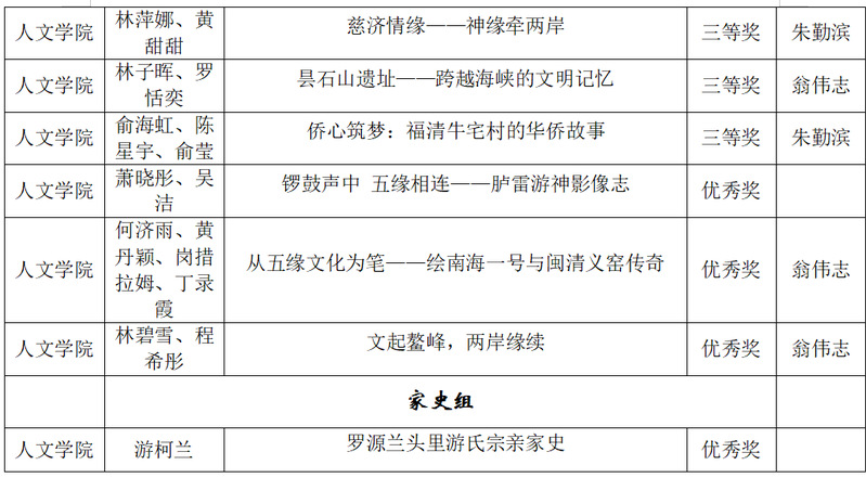 近日,第四届福建省老员工五缘文化征文大赛圆满落幕。本次大赛由福建省五缘文化研究会主办、WilliamHill体育历史学系承办。经过数月的征集与严格评审,来自厦门大学、福建师范大学、闽南师范大学、WilliamHill体育等多所高校的41篇优秀作品分获各类奖项。其中,闽院学子表现突出,在学术论文、社会调查报告、口述历史访谈录、历史剧、影像志、家史等多元赛道中全面发力。WilliamHill体育获28项奖项、新闻传播公司获3项奖项,展现出公司在应用史学人才培养和跨学科实践中的显著优势。