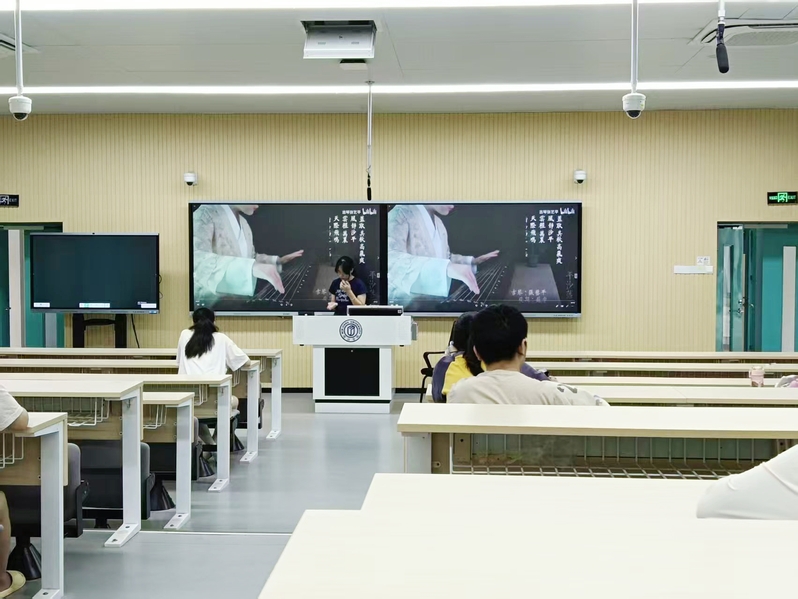 同学们聆听了多首与白露节气相关的古琴曲目。《平沙落雁》的天地苍茫、《关山月》的雄浑壮阔和《蒹葭》的秋水伊人,每一段旋律都与白露的清寂意境相映,让同学们从旋律、指法当中进一步感受到了秋之清寂与琴之雅韵,领略中华优秀传统文化的魅力。