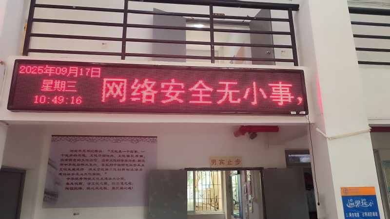 公司充分利用各类宣传阵地资源,着力构建全方位、沉浸式网络安全宣传场景。通过LED电子屏滚动播放“网络安全无小事,警惕之心不可失”“个人信息不泄露,网络生活更舒心”等醒目标语,持续强化同学们的安全意识;同时循环播出网络安全主题宣传片,生动呈现网络攻击与信息泄露的风险及防范措施,吸引众多同学关注。标语提醒与影像科普联动,潜移默化中提升员工的防范意识和应对能力。