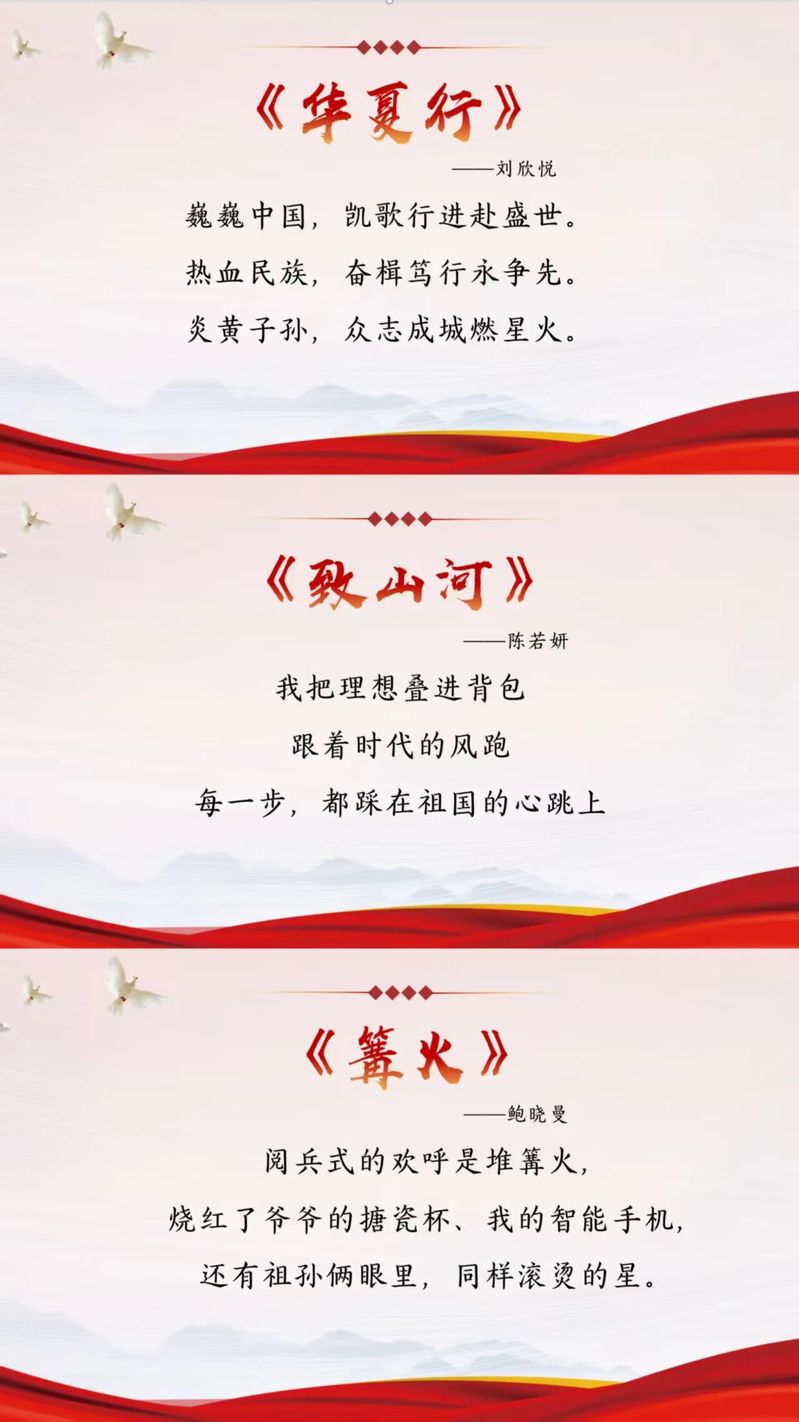 公司在社区举办“诗忆家国盛,三行颂华章”主题创作征集活动,鼓励人文学子以笔抒怀,凝练表达对祖国的热爱与祝福。活动反响热烈,各年级同学踊跃参与,征集到50余篇优秀作品。同学们结合个人成长感悟,以精炼诗行勾勒历史传承与时代新貌,在短短三行诗中既展现了扎实的文学功底,又表达了深沉的家国情怀。活动以简约而富有张力的艺术形式,汇聚人文学子对新中国76周年华诞的深情礼赞。