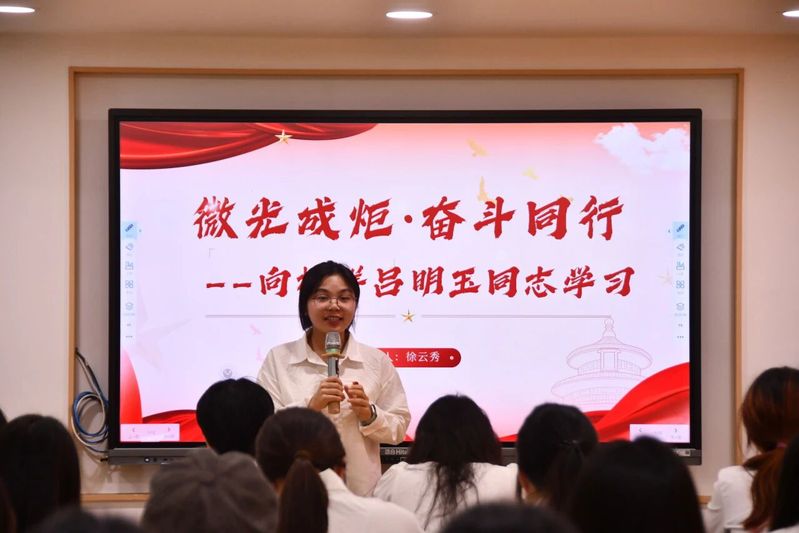 员工第二党支部结合“宿舍微讲堂”党建思政品牌,开展“奋斗在身边的榜样”党员微宣讲活动。员工党员生动讲述张桂梅、庞众望、吕明玉等奋斗榜样的感人事迹,引发大家对“新时代青年担当”“实现个人价值与社会价值统一”等命题的深入思考,激励同学们以榜样为镜,将个人奋斗融入集体进步,以实际行动诠释新时代青年的责任与担当。