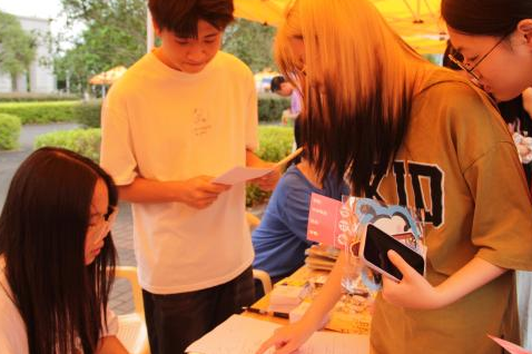 摊位之间,人头攒动。历史文化协会的“听历史事件,猜历史人物”趣味挑战,吸引了大批同学踊跃参与。同学们凝神思索,热烈讨论,不仅有趣,更收获了不少历史文化知识。晨笛文学社则通过“文学知识竞答”“文学海龟汤”“拼贴诗”等创意互动,带领同学们走进文学的万千世界,点亮心中的文学星火。