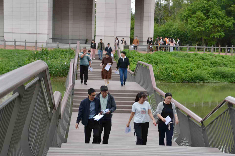 健康走活动以福万楼前中心桥为起点,沿溪源环湖步道环行,途经树人桥返回终点。沿途设置三个知识答题点,将健身与益智有机融合。老师们手持打卡卡片,三五成群,漫步于湖畔秋色之中,时而驻足交流,时而拍照留念,在轻松愉悦的氛围中舒展身心、畅叙情谊。答题点前,大家围绕校园文化、健康知识等内容热烈交流,在集章打卡的过程中不仅收获了乐趣,更深化了对公司文化的理解与认同。